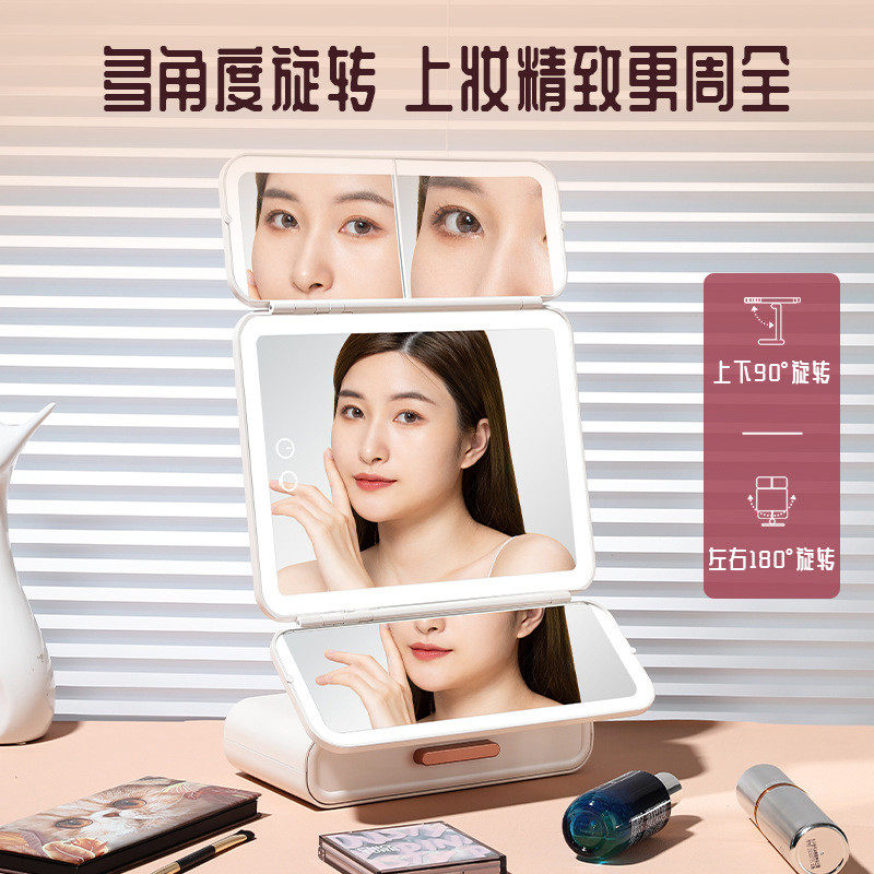 镜子led化妆镜带灯台式桌面送女生补光折叠智能贝壳镜梳妆