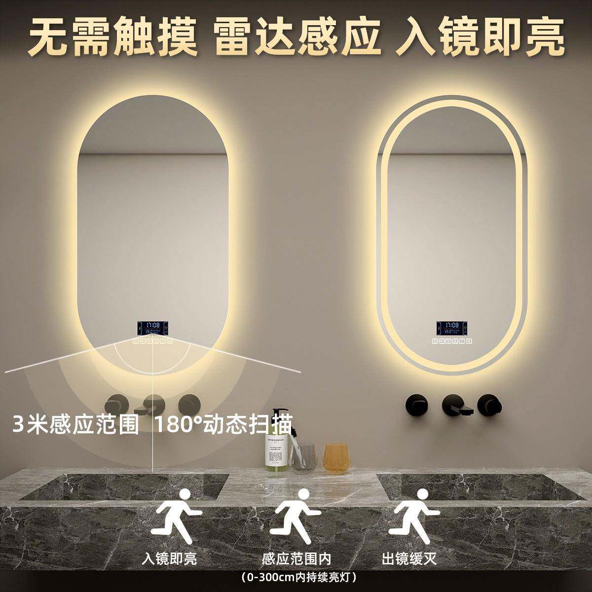 椭圆形浴室镜led灯智能镜子触摸屏梳妆壁挂化妆镜高清除雾梳妆镜