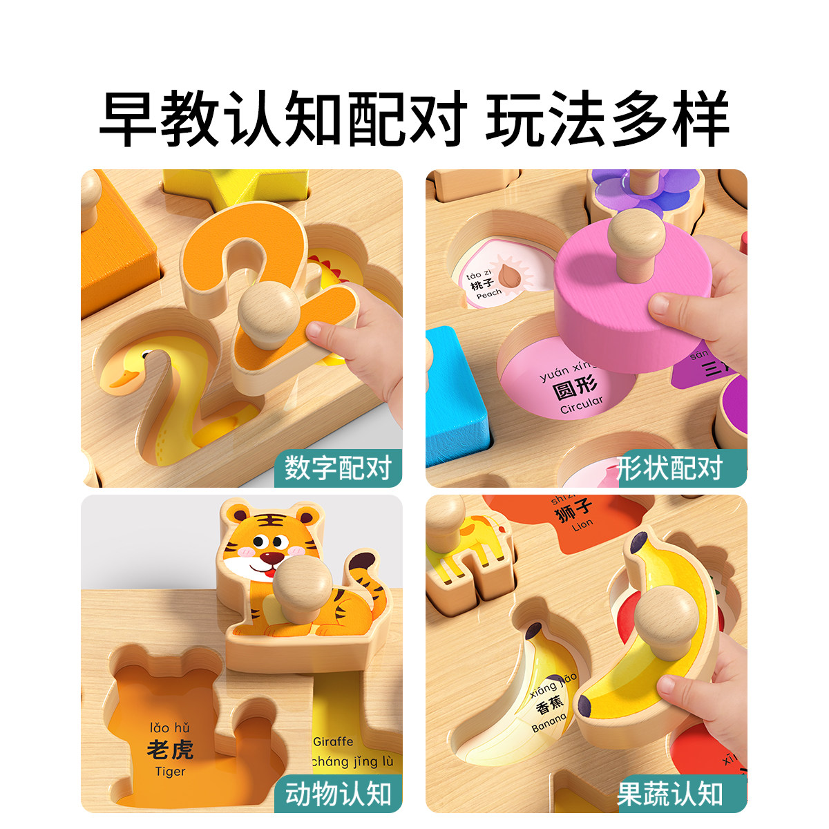 蒙氏早教手抓板0到3岁1益智玩具数字拼图积木儿童一宝宝教具实木