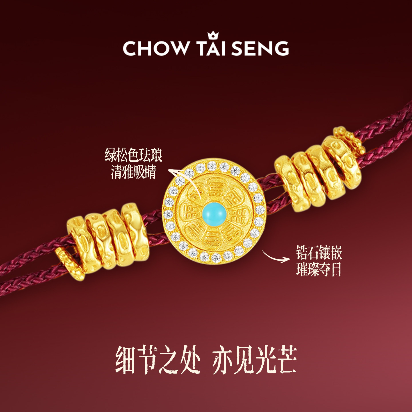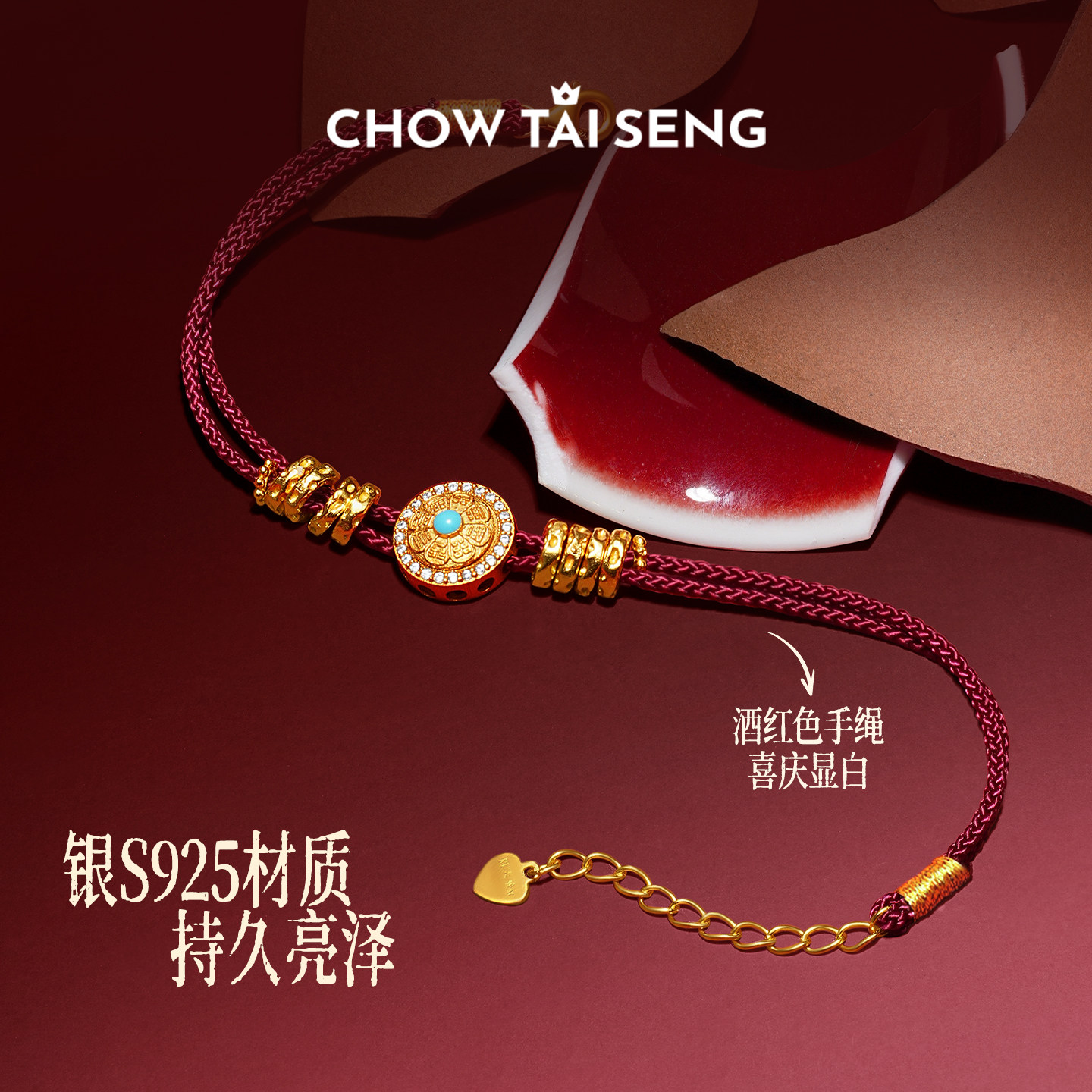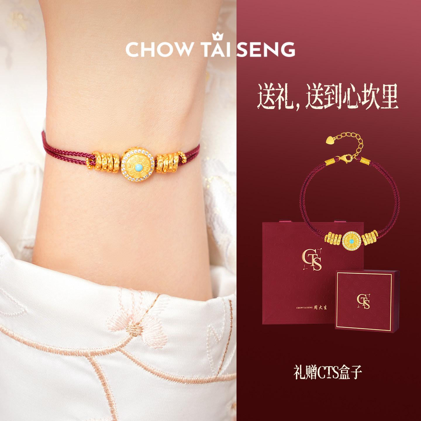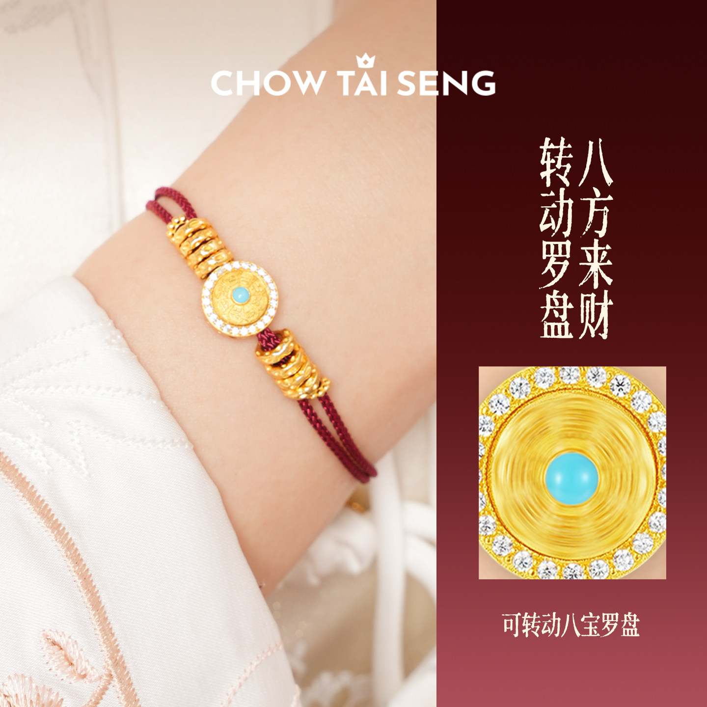 周大生财绕八宝手链银女编绳国风手饰新中式本命年生日礼物