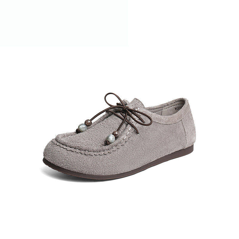 Chio2nd南风 单鞋女交叉绑带浅色系小皮鞋夏天配裙子的鞋子平底鞋