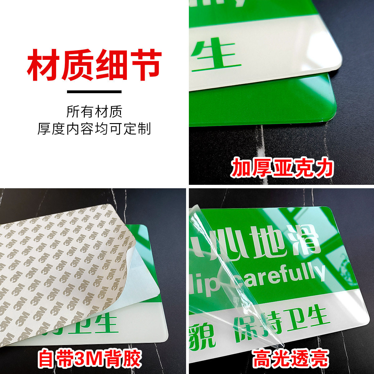 洗手台清洁用品放置处标识亚克力标志酒店保洁工具间卫生间拖把池上前一小步文明一大步便后请冲水温馨提示牌