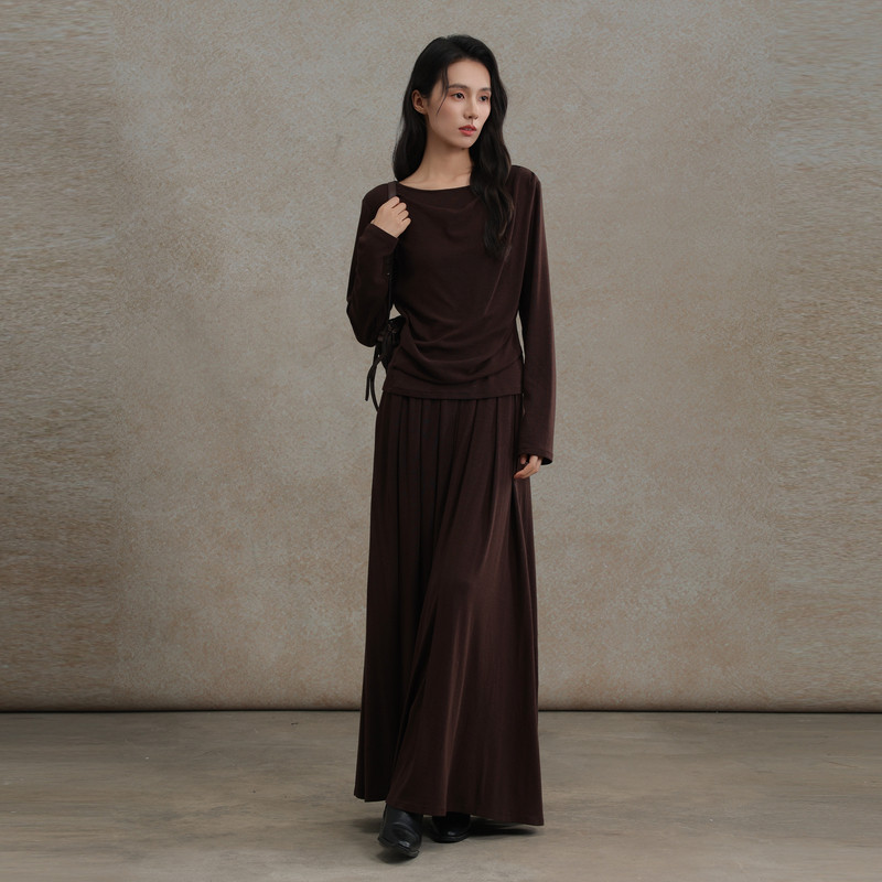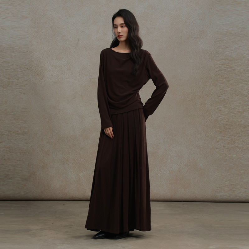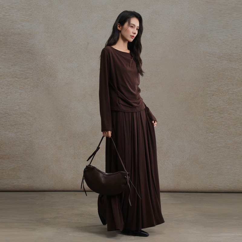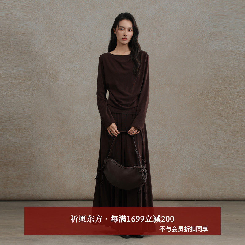AIRIQI商场同款25冬新款慵懒风针织上衣+压褶半裙套装女AH54TZ378