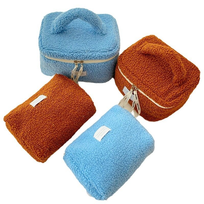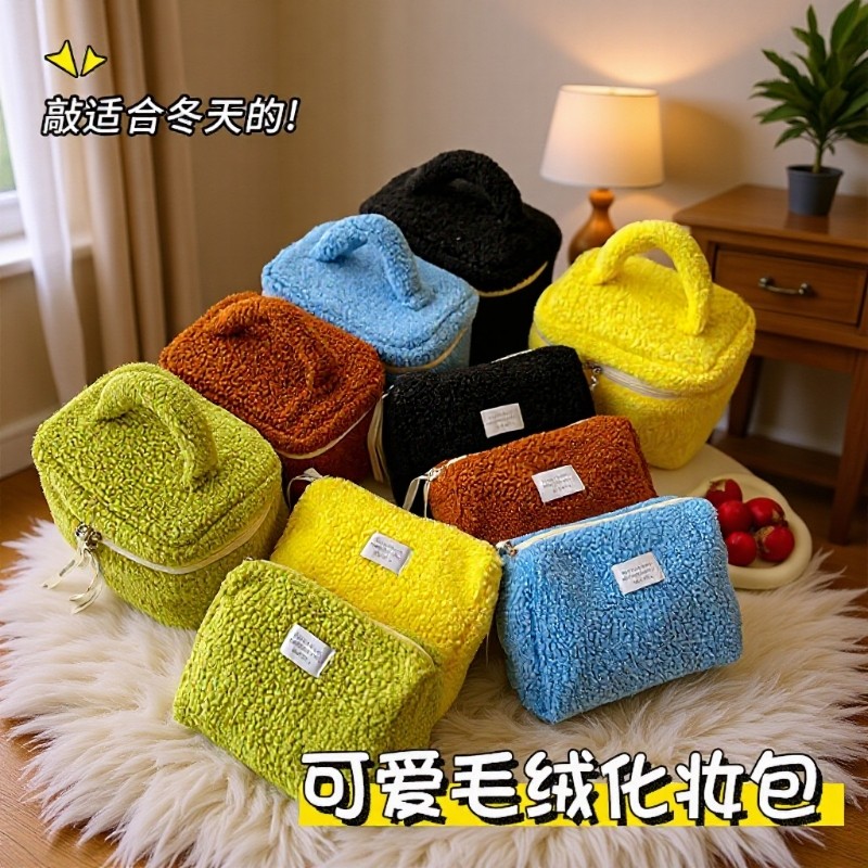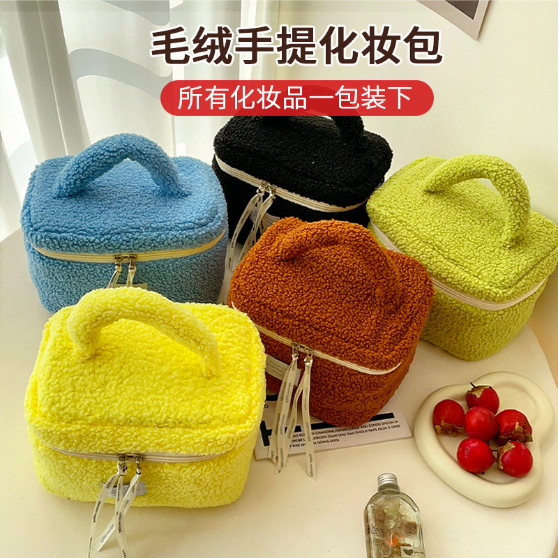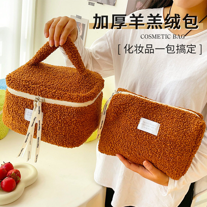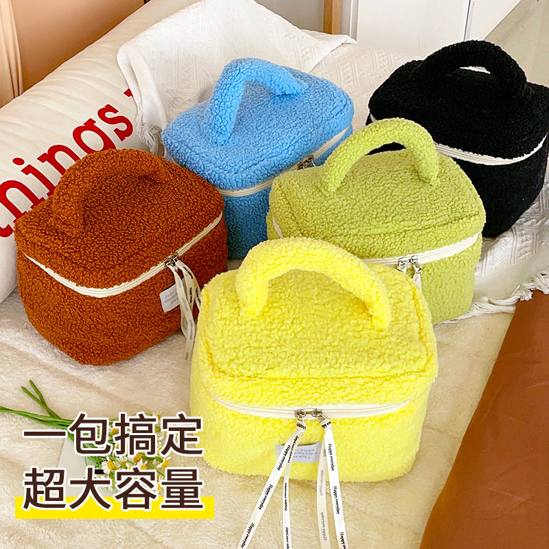 可爱羊羔绒毛茸茸韩式化妆包简约护肤品包大容量女生收纳包包