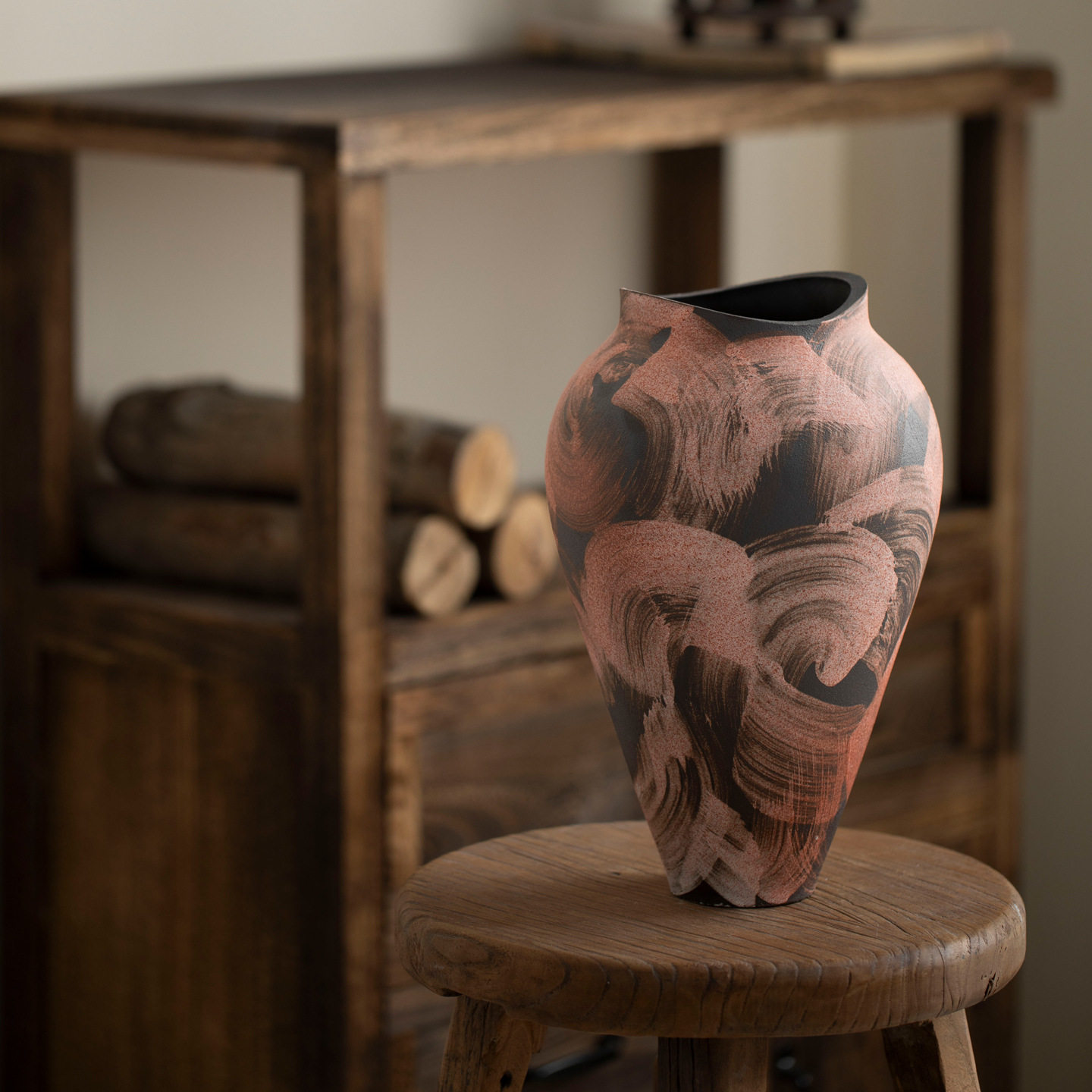 景德镇复古怀旧陶瓷花瓶侘寂风粗陶花器民宿酒店展示柜装饰品摆件
