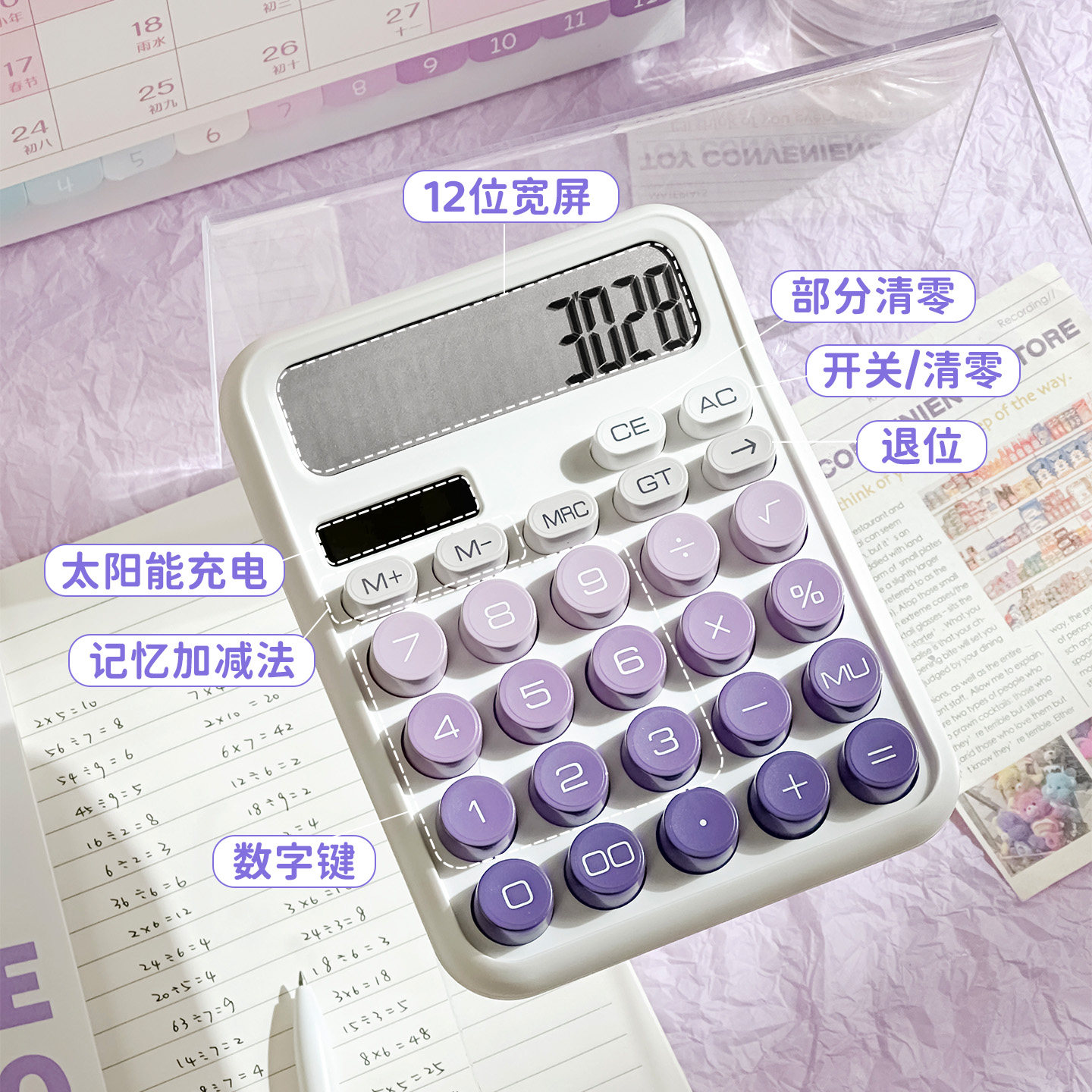 太阳能渐变计算器高颜值女神款会计办公室用2025新款多功能计算机