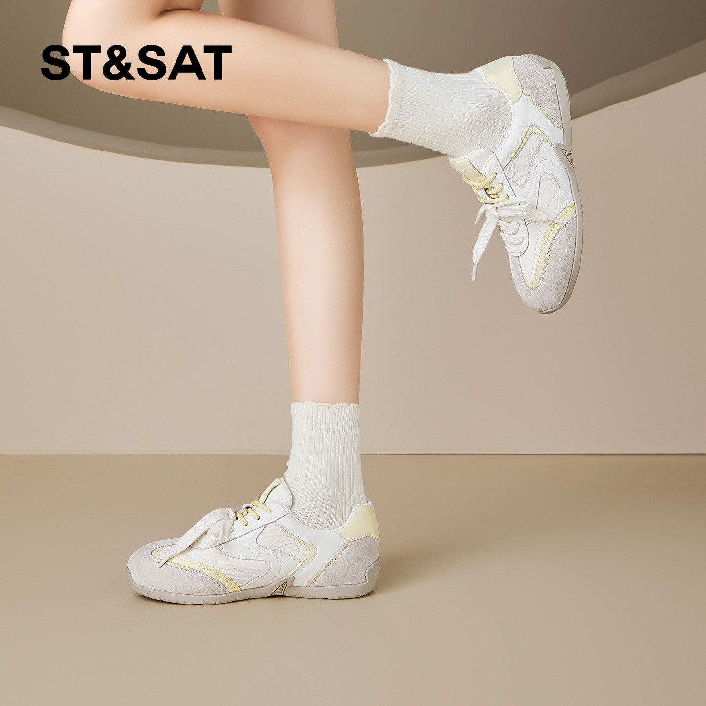 星期六双鞋带软底德训鞋女2026春季新款复古配裙子通勤轻便休闲鞋