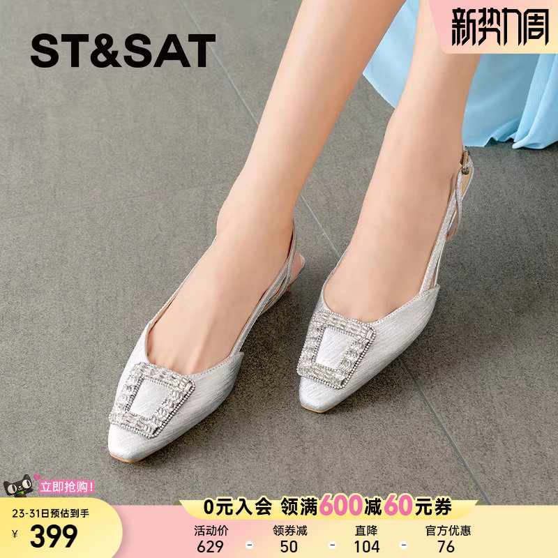星期六气质优雅凉鞋女2025新款超火方钻小香风外穿半拖SSD2114491
