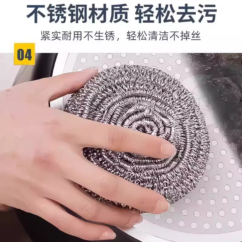 1袋4只金属钢丝球不锈钢家用厨房去垢去油污洗碗清洁球高品质大号