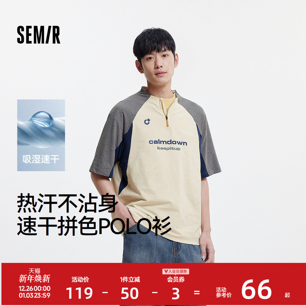 森马POLO衫男吸湿速干拼色运动球衣风t恤小立领上衣2025夏季新款