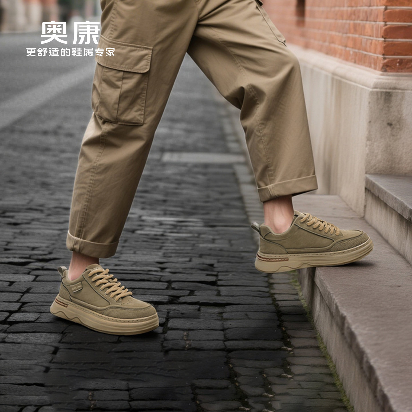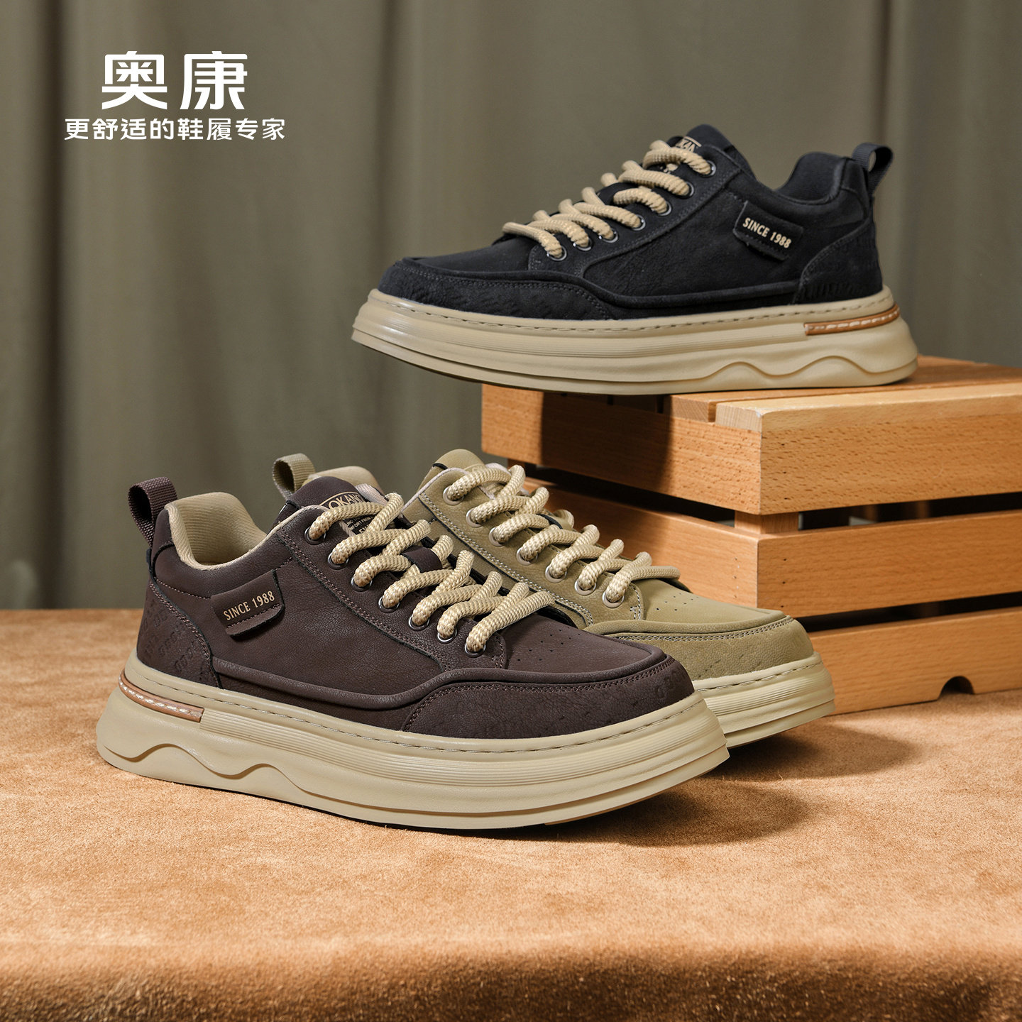 奥康 男鞋2026春季新款复古板鞋通勤潮鞋厚底增高低帮男士休闲鞋W