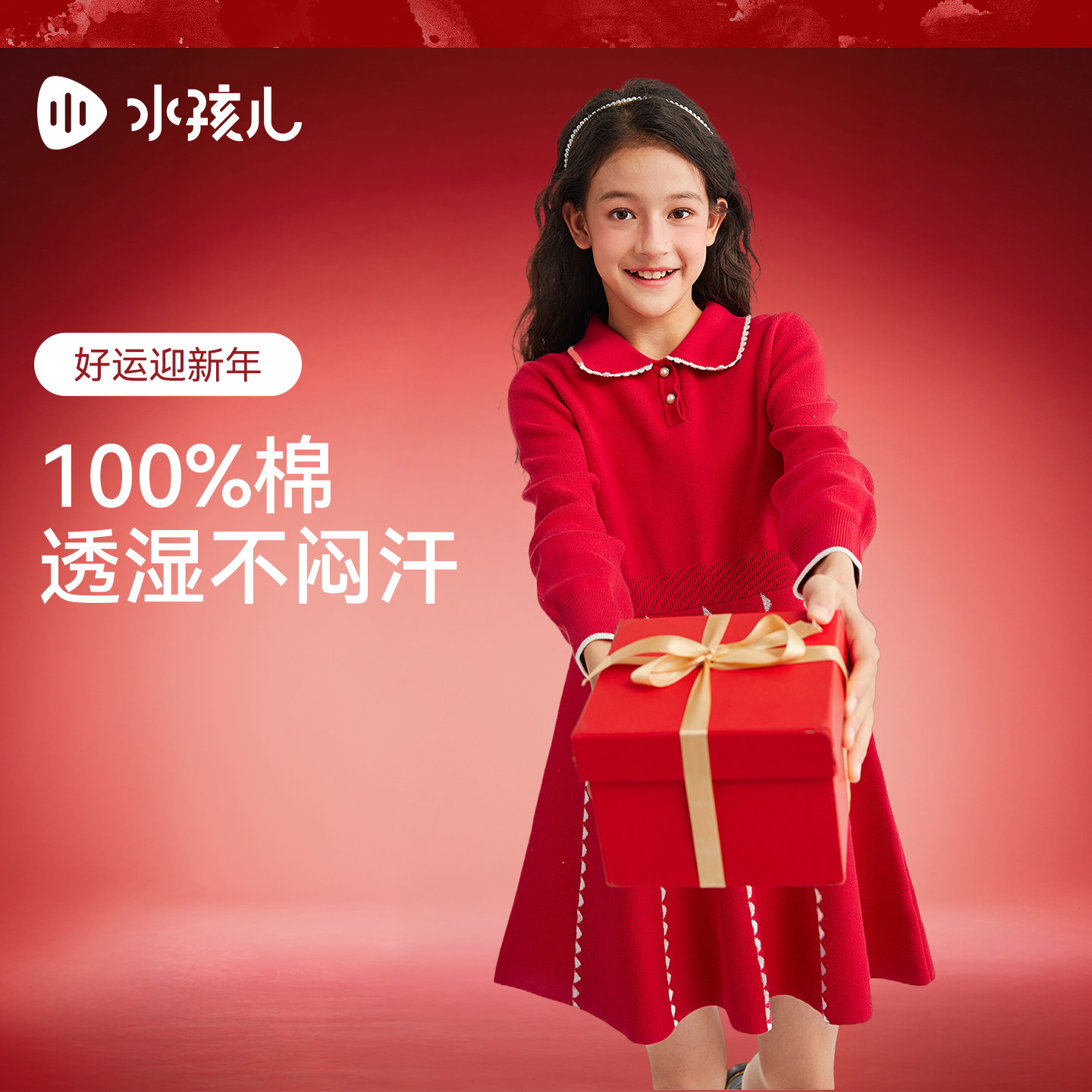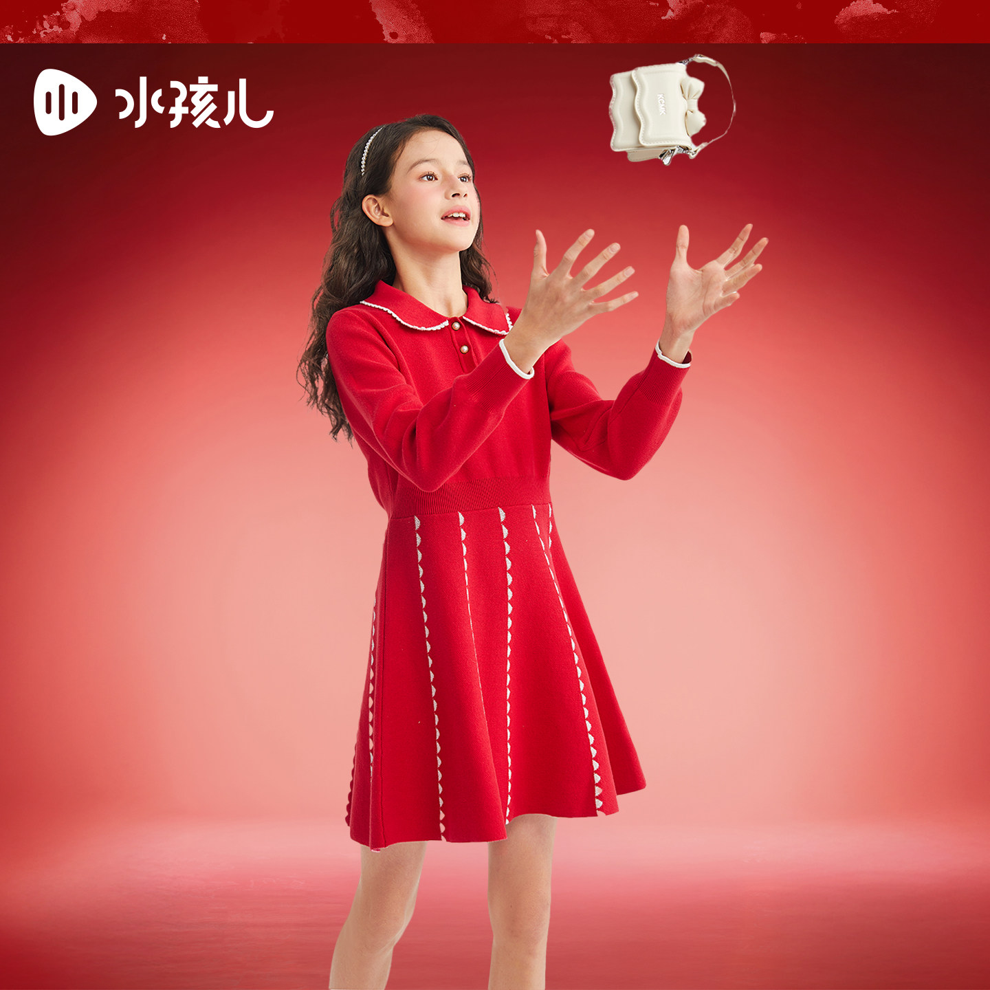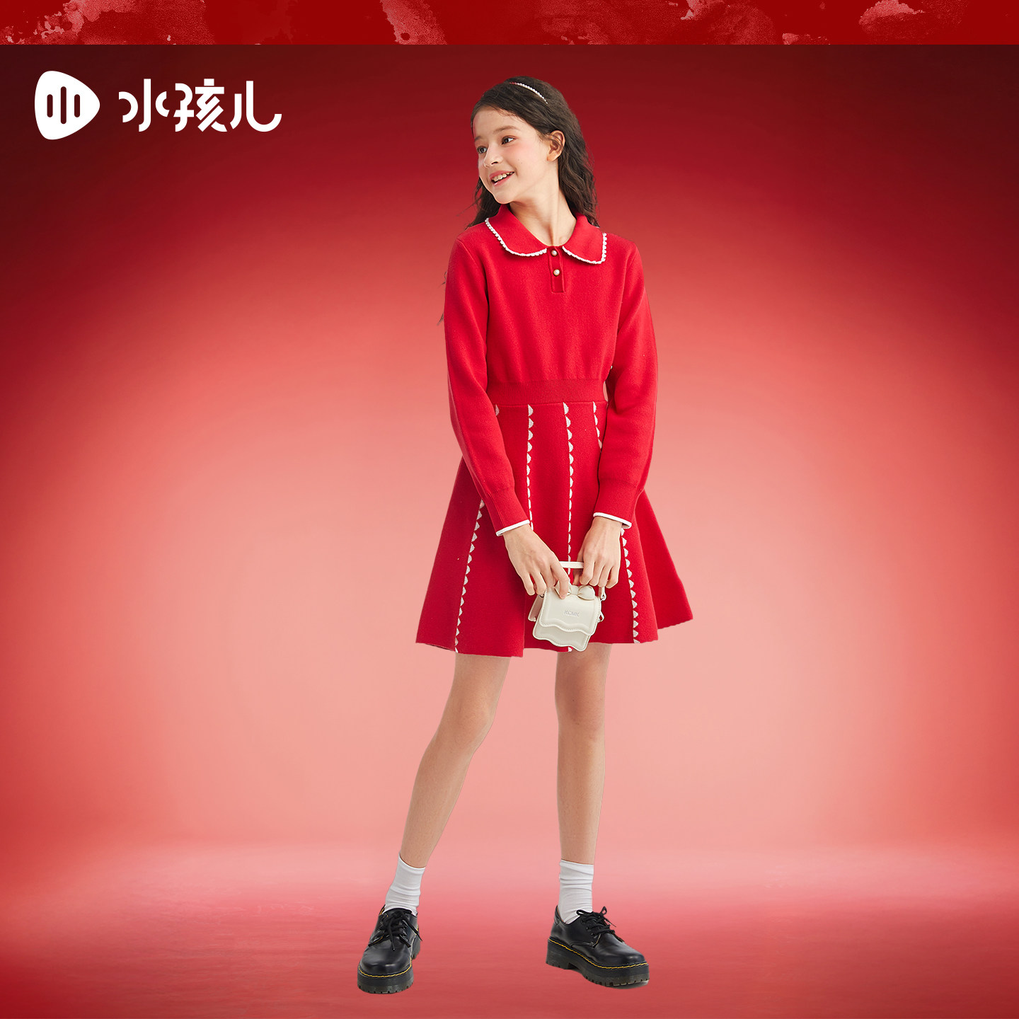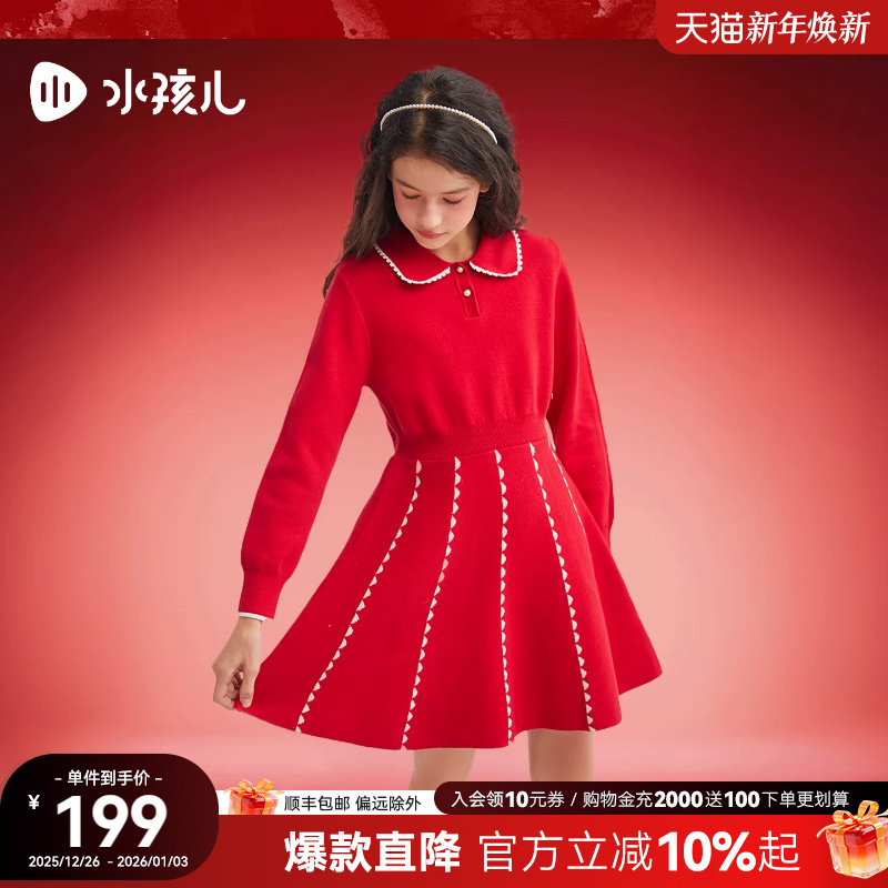 水孩儿女童连衣裙25秋冬装新款中大童红色针织裙女宝宝毛衣套裙子