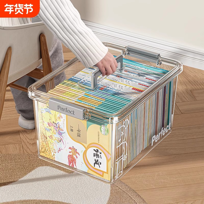 收纳箱书箱学生教室装书书籍大容量透明整理箱子书本收纳盒储物箱