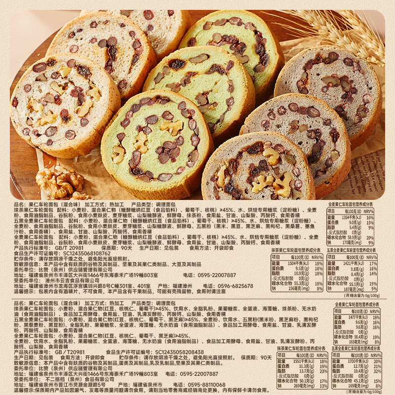 比比赞全麦坚果仁车轮面包整箱早餐大列巴欧包饼零食休闲食品小吃