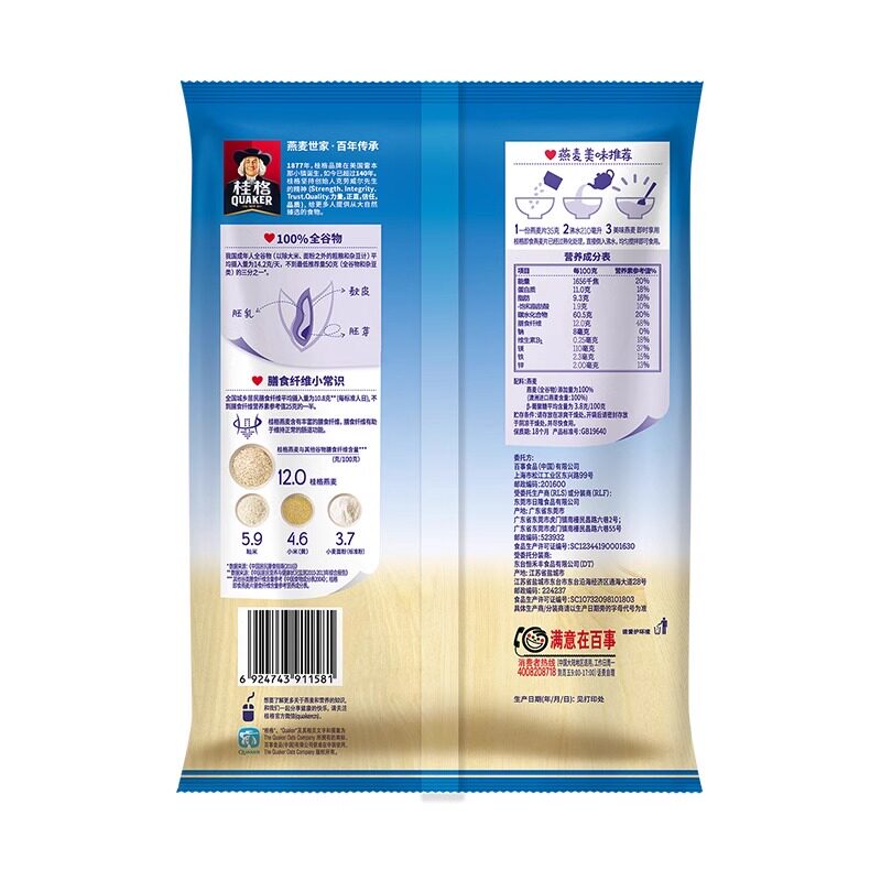 桂格即食燕麦片原味1000g早餐冲饮营养谷物免煮懒人饱腹代餐麦片