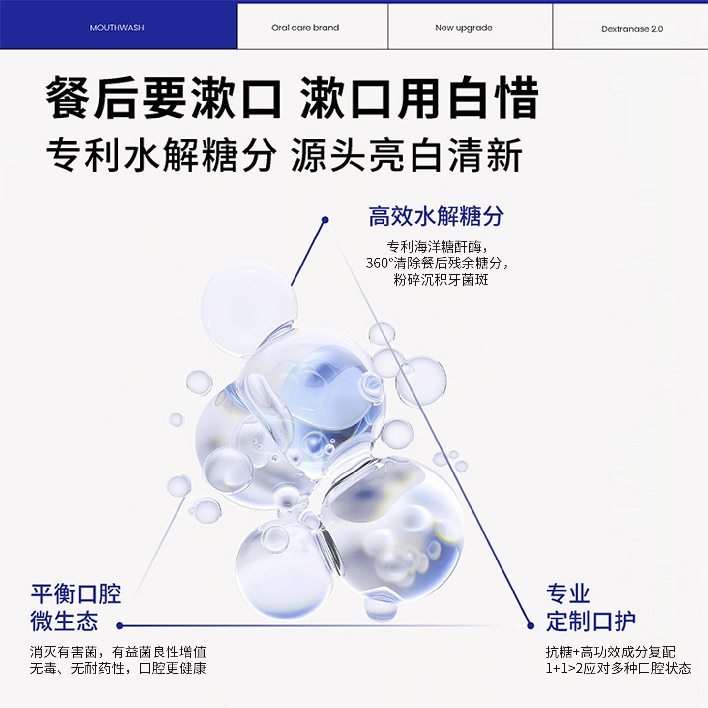 【张杰同款】白惜抗漱口水补充装益生菌持久留香护龈防蛀便携清新
