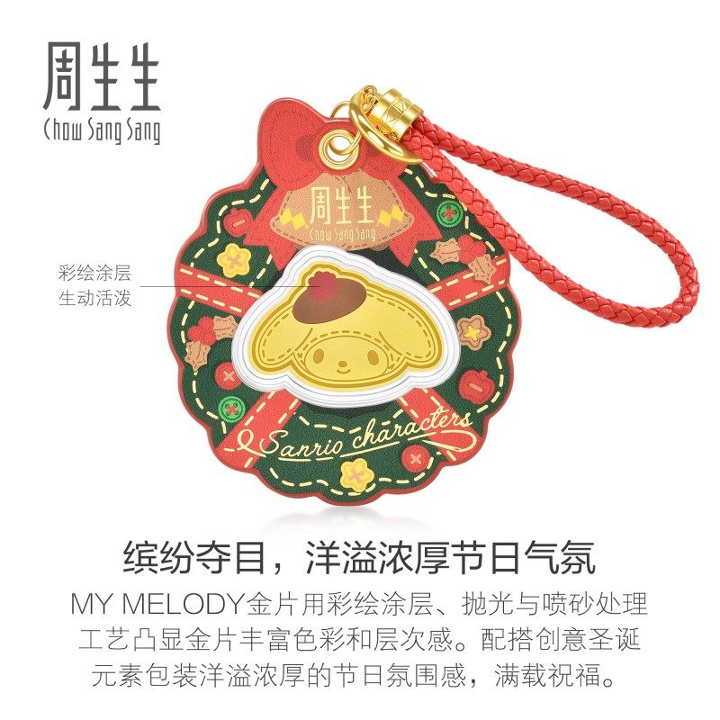 圣诞周生生Au999.9黄金三丽鸥家族Hello Kitty/My Melody圣诞金片