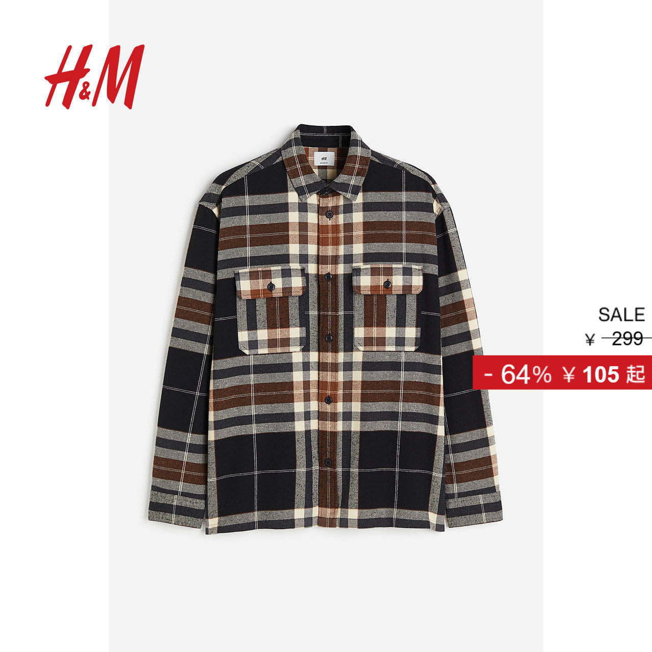 HM男装衬衫美式复古格子衫长袖上衣冬季外套休闲衬衣男款1070734