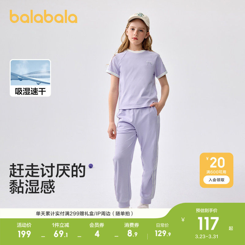巴拉巴拉童装儿童短袖套装女童2026休闲春夏中大童运动洋气两件套