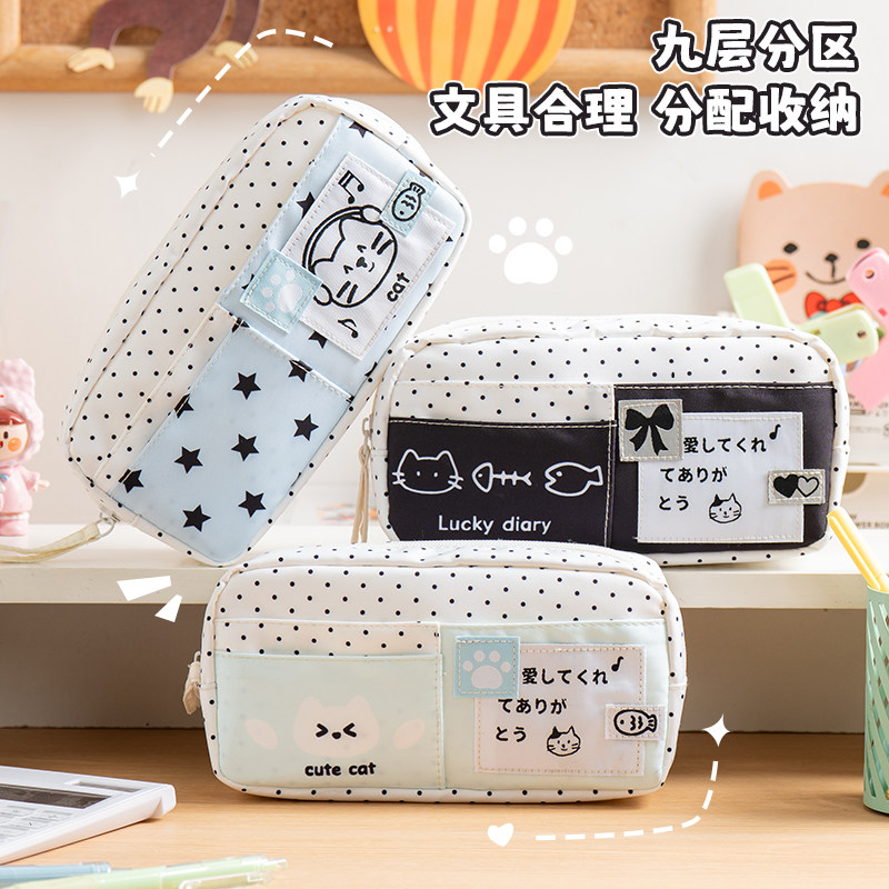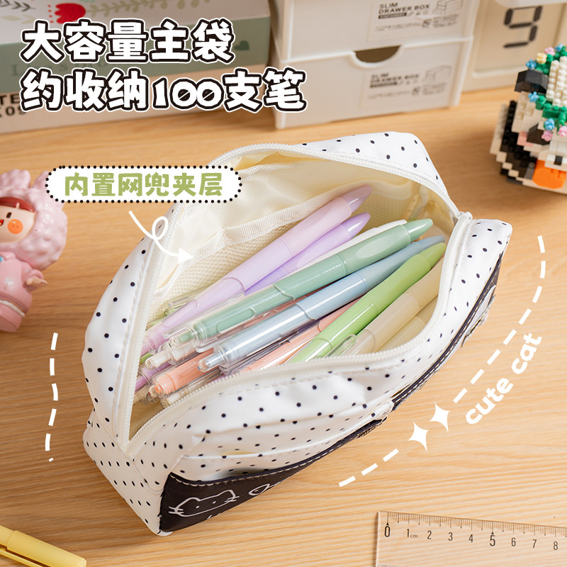 笔袋高颜值ins风男生收纳盒卡通可爱波点小猫小众不撞款2025新款大容量女生超火简约百搭文具盒学生学习用品