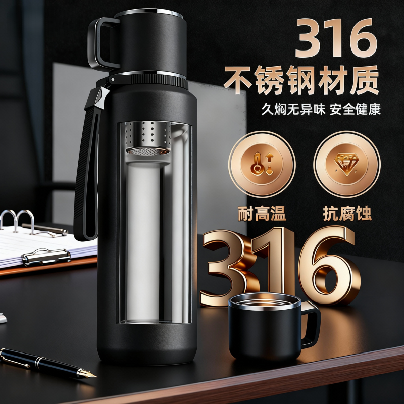 316不锈钢保温杯男款大容量2025新款保冷焖闷泡茶杯子水杯壶正品