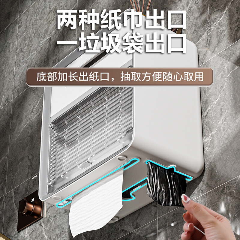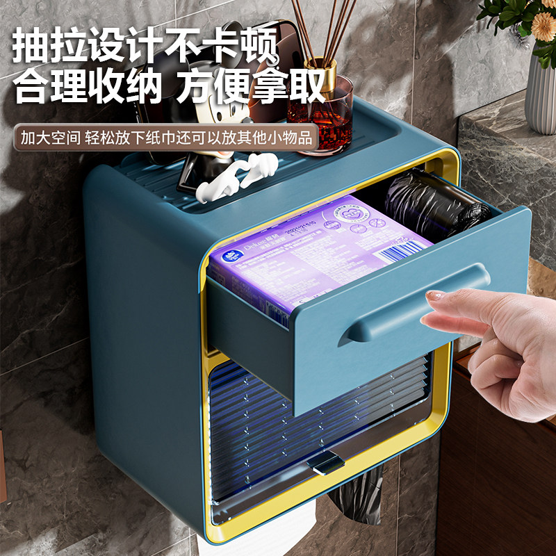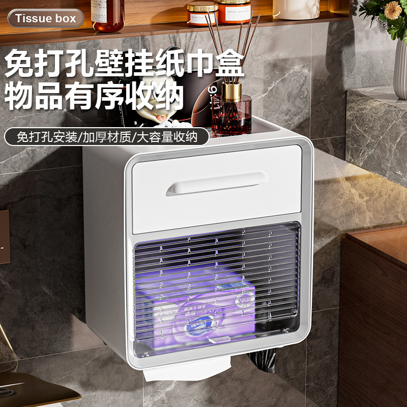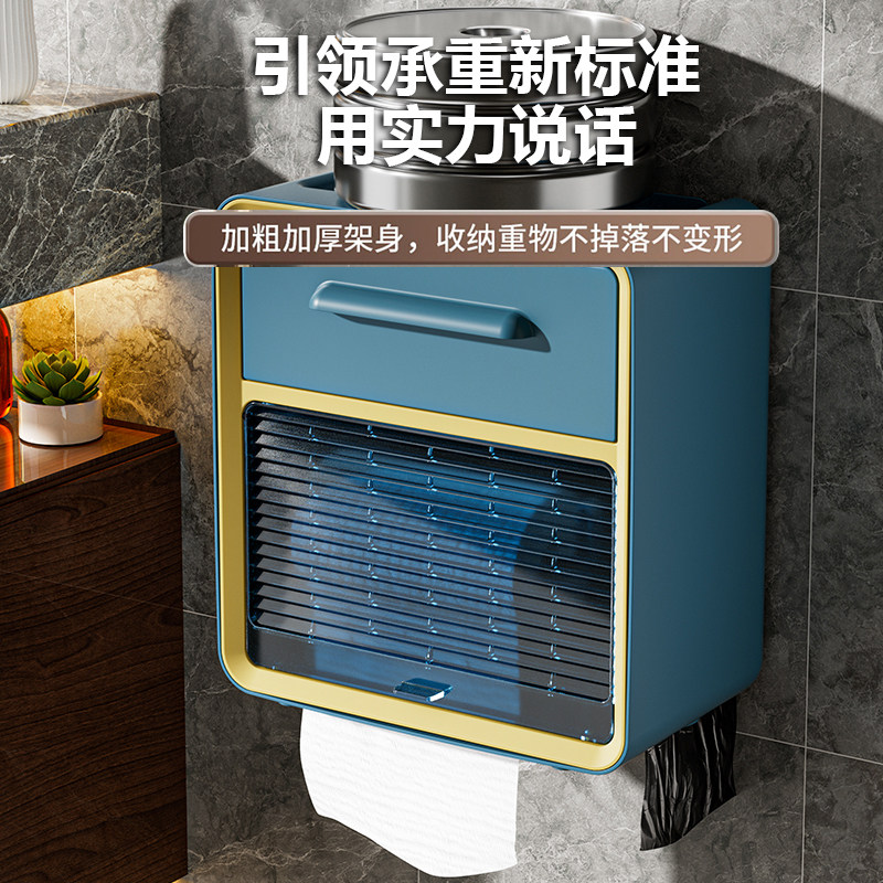 厕所纸巾盒卫生间壁挂式防水免打孔置物架卷纸抽纸盒轻奢高档方形