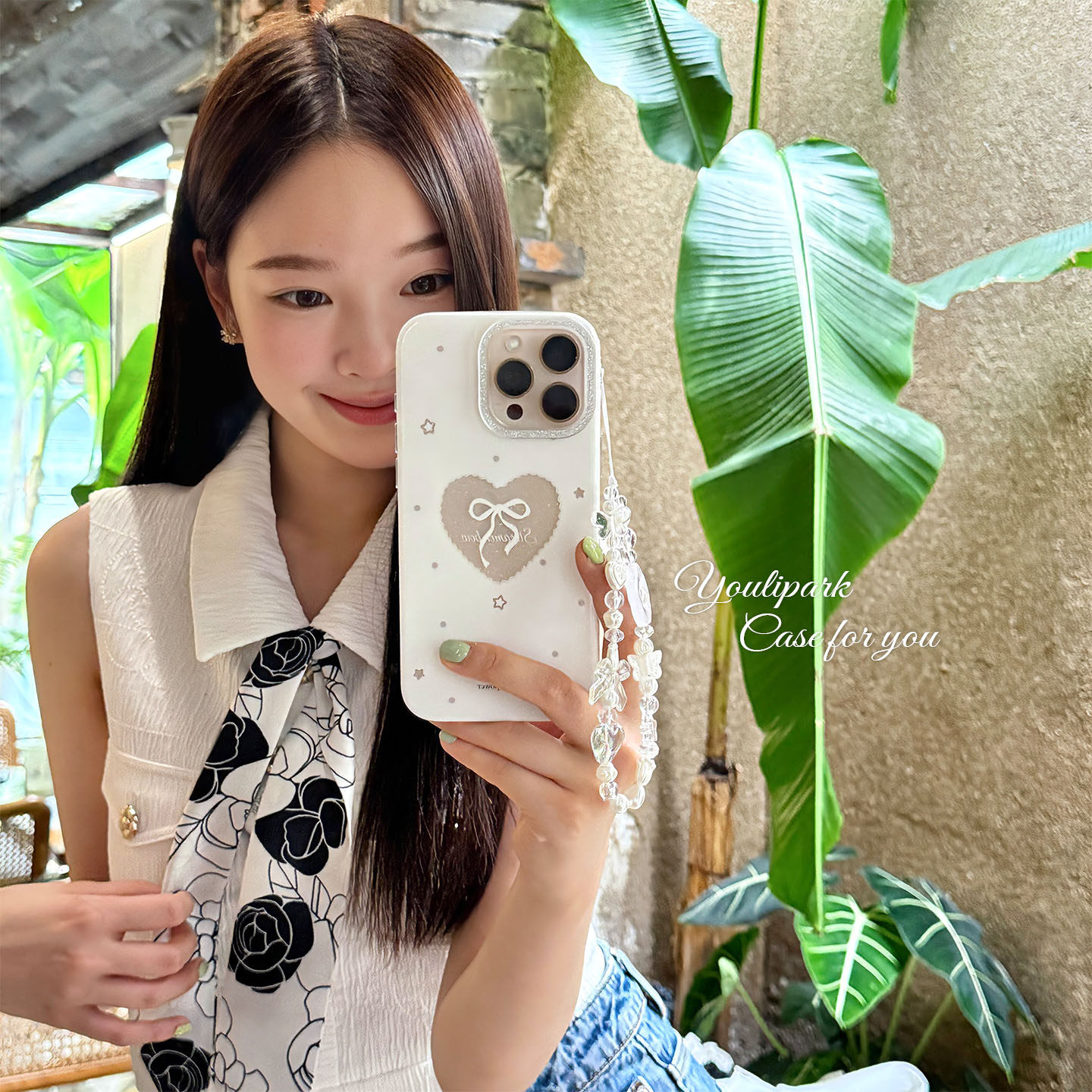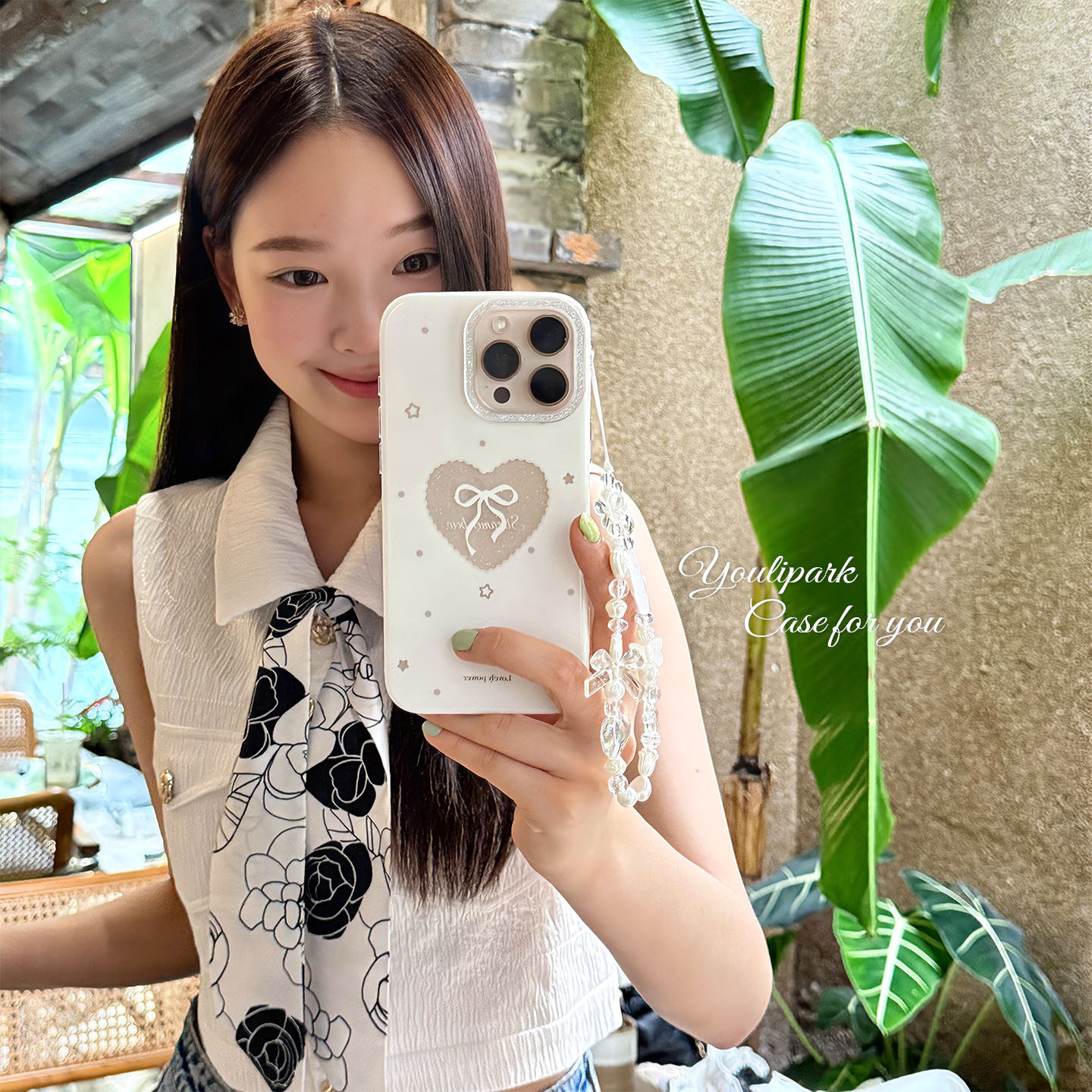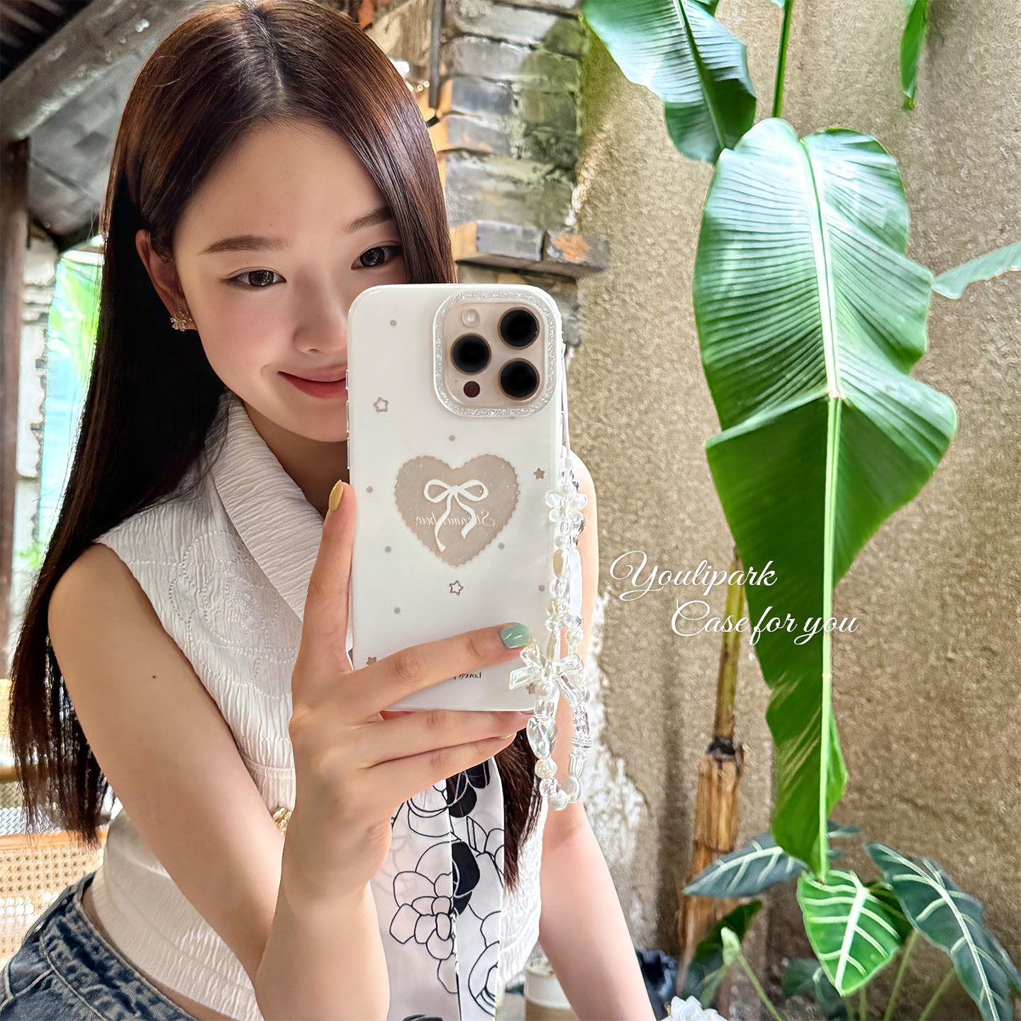由里公园ins小众少女温柔闪粉爱心蝴蝶结15适用17pro苹果17ProMax手机壳iPhone16全包17新款14Promax保护套13