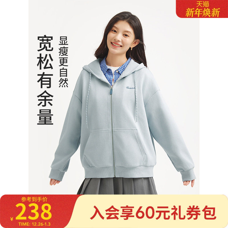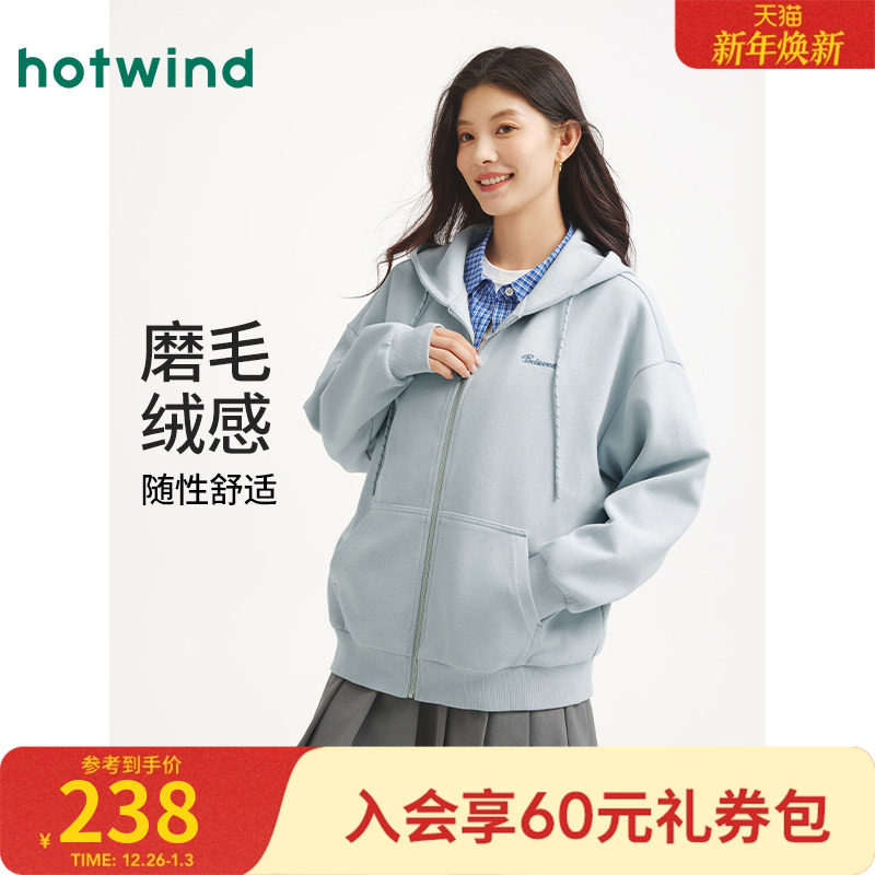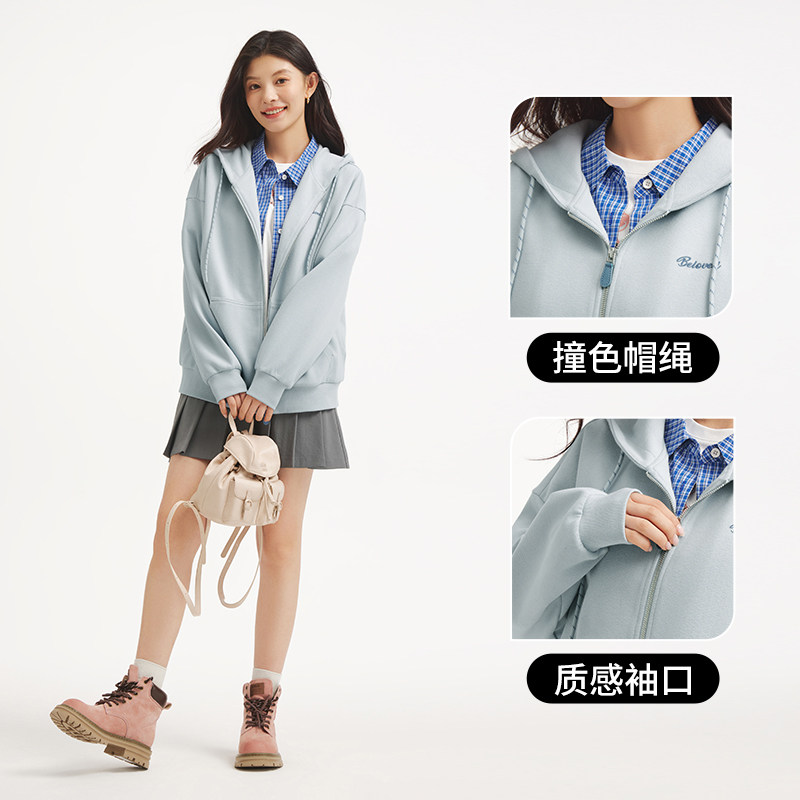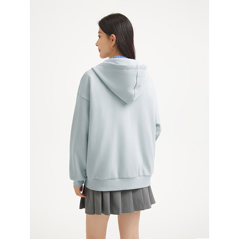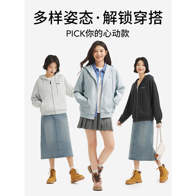 热风女士绒感卫衣2025年秋季新款经典连帽开衫卫衣宽松休闲学院风