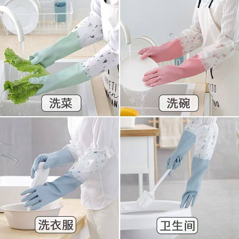加绒洗碗手套秋冬季家务碗筷清洁橡胶皮束口保暖加长宽口防滑防寒