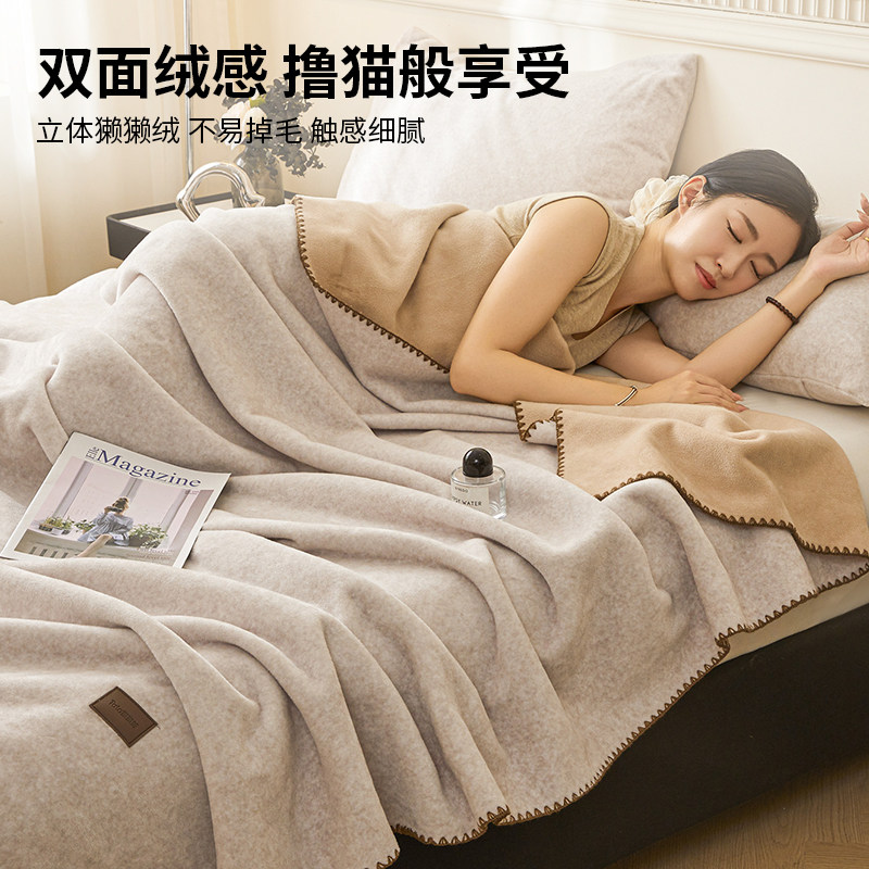 A类牛奶绒毛毯冬季盖毯可机洗单人宿舍毯披肩午睡毯双面绒床单厚