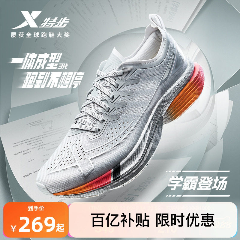 特步一体成型三代丨跑鞋男冬季减震回弹运动鞋中考体育体考跑步鞋