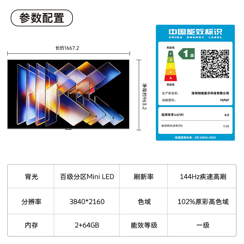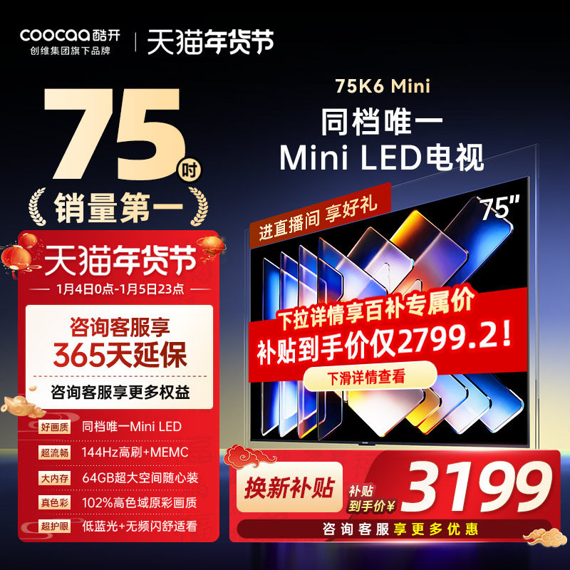 创维酷开75英寸Mini LED液晶家用高清电视机2025新款以旧换新补贴