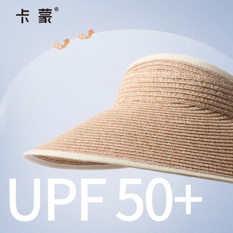 卡蒙防晒帽编织草帽女夏日防紫外线蛋卷空顶帽可折叠发箍遮阳帽