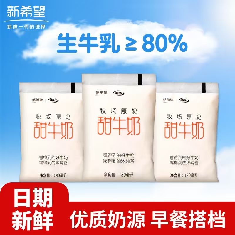 超值装新日期南山新希望甜牛奶袋装透明袋网红早餐奶180ml整箱