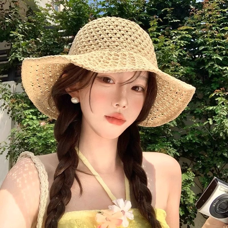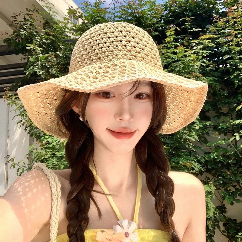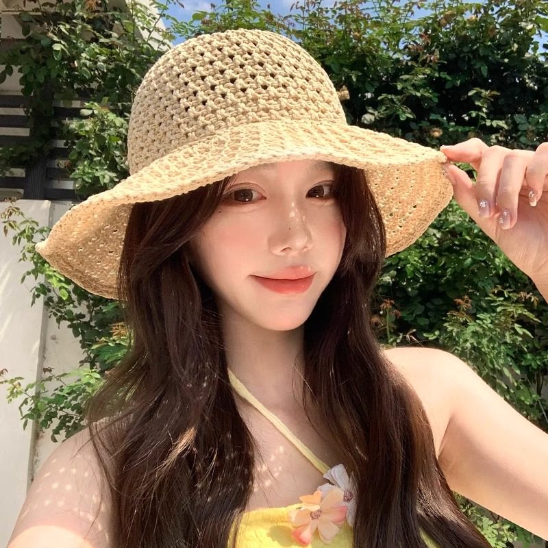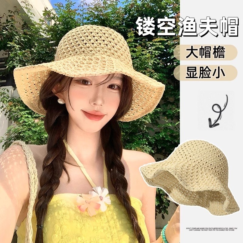 镂空渔夫帽子女款2025新款夏季海边度假防晒遮阳帽大帽檐显脸小