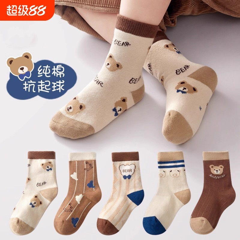 儿童袜子男童纯棉秋款男宝宝中筒a类棉袜男孩秋冬季无骨全棉童袜