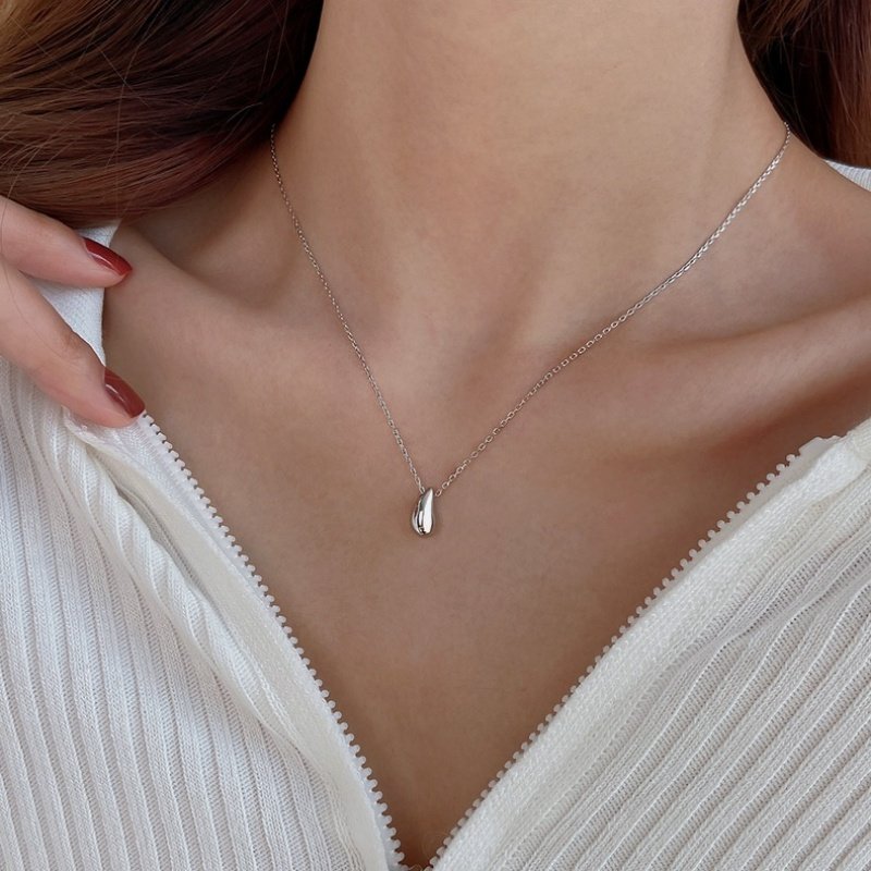 银色水滴吊坠项链女长款轻奢小众钛钢不掉色装饰毛衣链高级感配饰