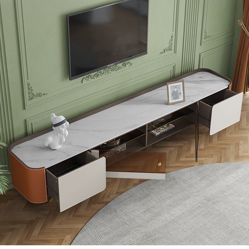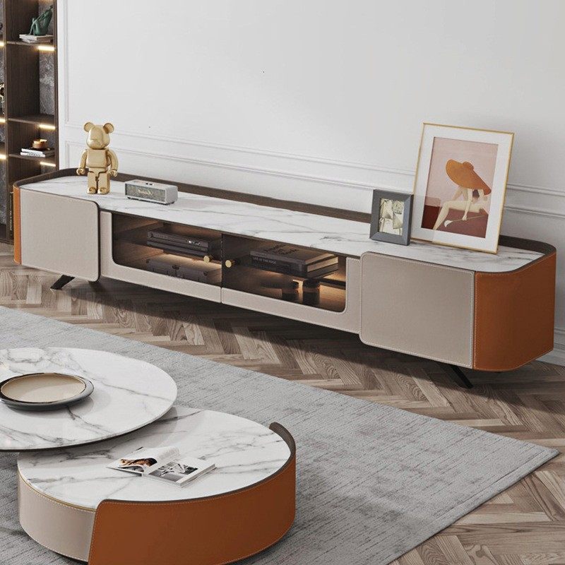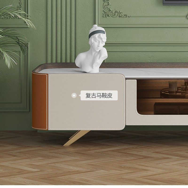 马鞍皮成套茶几电视柜组合大小圆皮质茶几客厅现代茶几简约电视柜