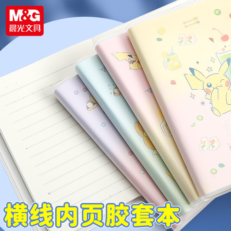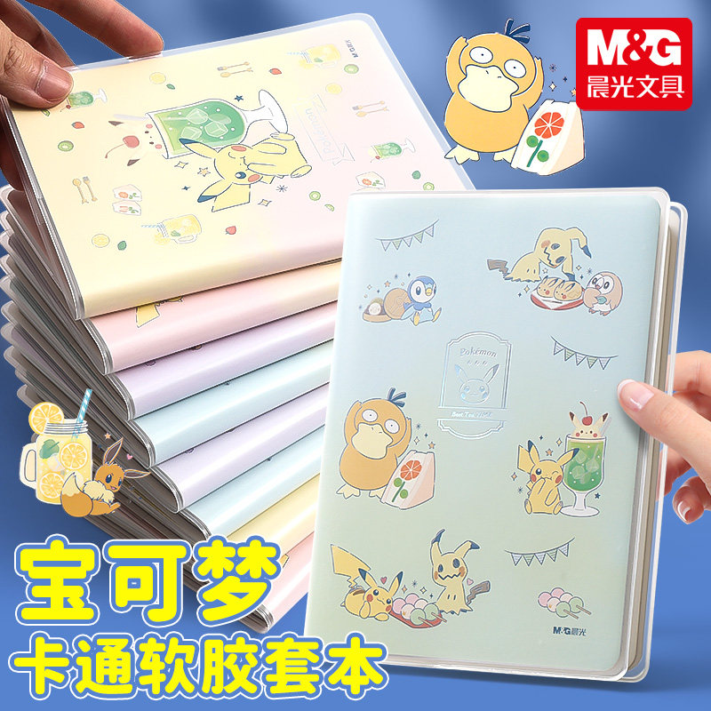 晨光小笔记本随身口袋本迷你本子高颜值胶套本大学生宝可梦A6横线笔记本加厚记事本便携式日记本小学生皮卡丘