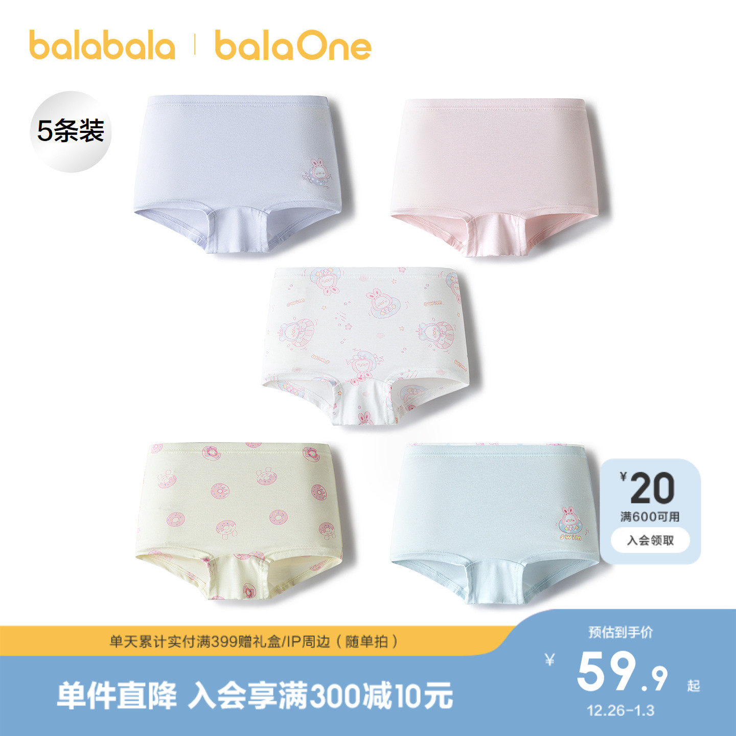 【balaOne】巴拉巴拉儿童内裤棉a类女童平角短裤柔弹四角裤五条装