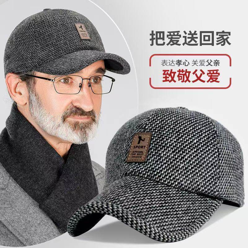 中老年人帽子男毛呢棒球帽秋冬季加厚保暖鸭舌帽老人帽户外休闲