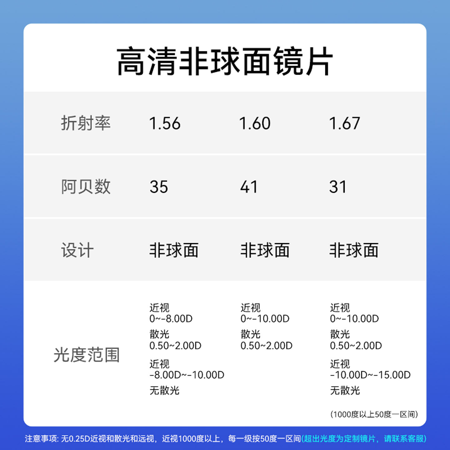 康耐特官方旗舰店视清高清非球面轻薄高透光光学镜片近视眼镜