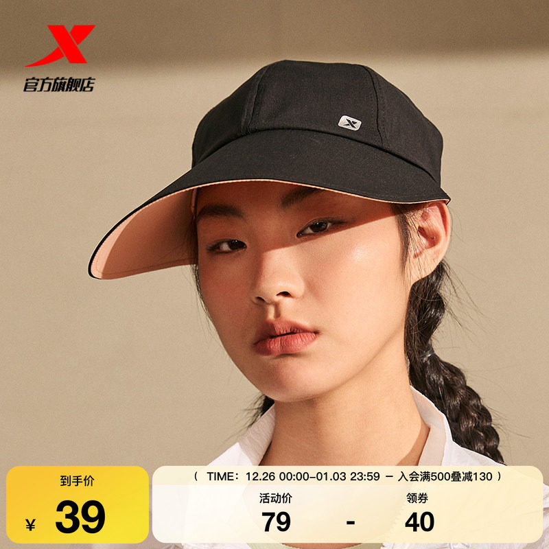 特步运动防晒帽女正品新款大帽檐遮阳帽冰感户外防紫外线空顶帽