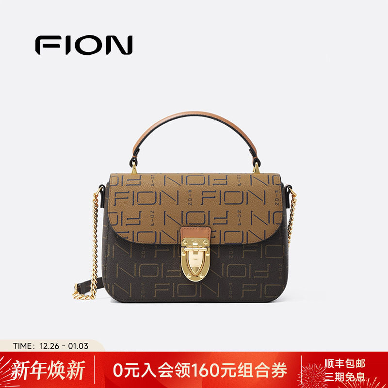 Fion/菲安妮老花邮差包2025新款小众百搭小方包质感轻奢斜挎包女