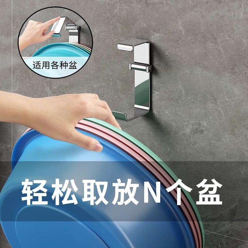 不锈钢脸盆挂钩收纳架挂盆神器免打孔浴室盆子卫生间置物架洗澡盆