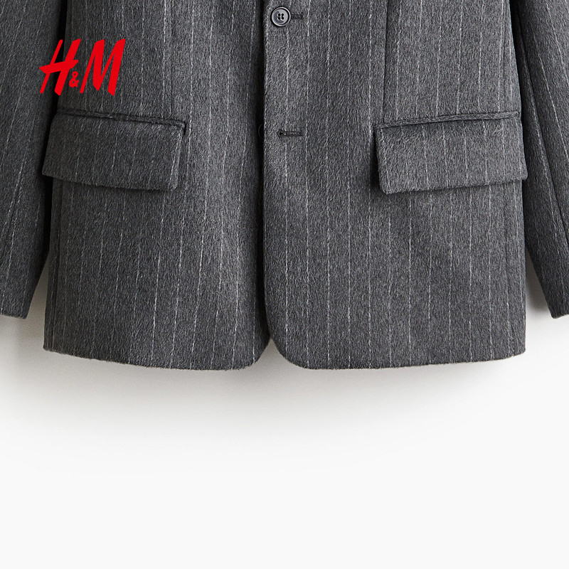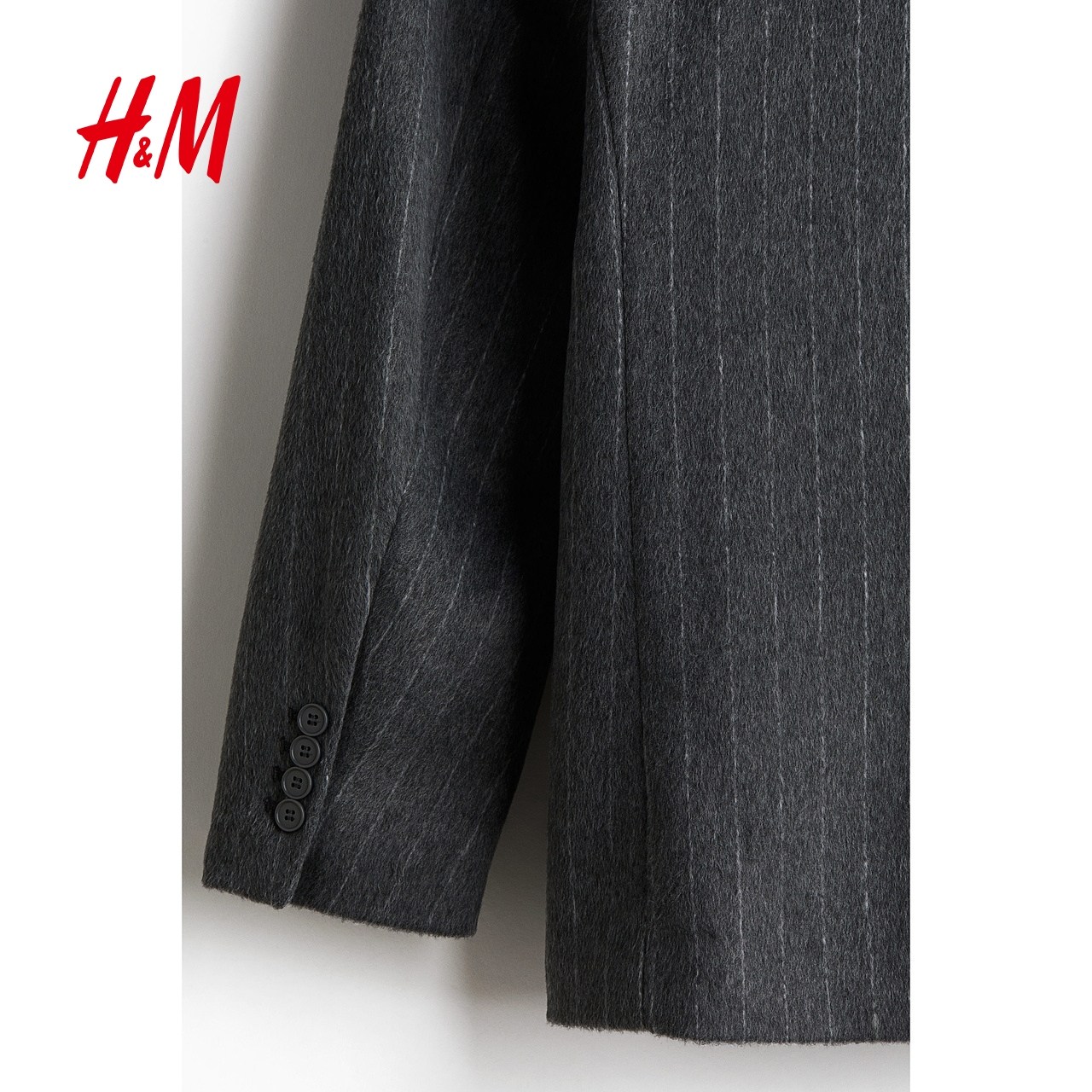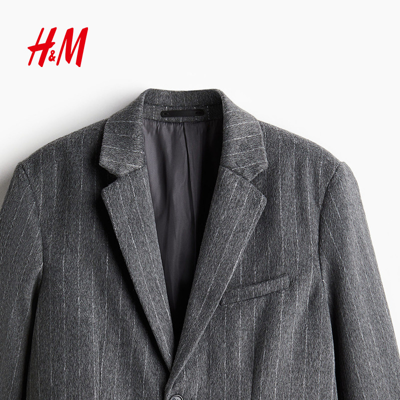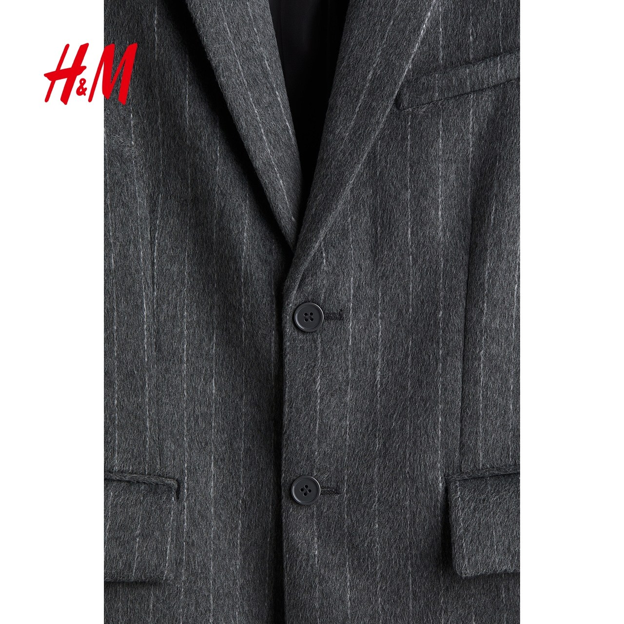 HM男装西服冬季时尚休闲男士V领条纹西装外套1235670