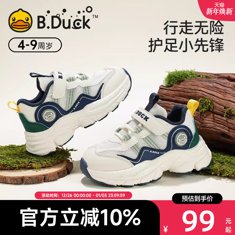 BDuck小黄鸭男儿童运动鞋网面透气2025秋季新款女童时尚老爹鞋