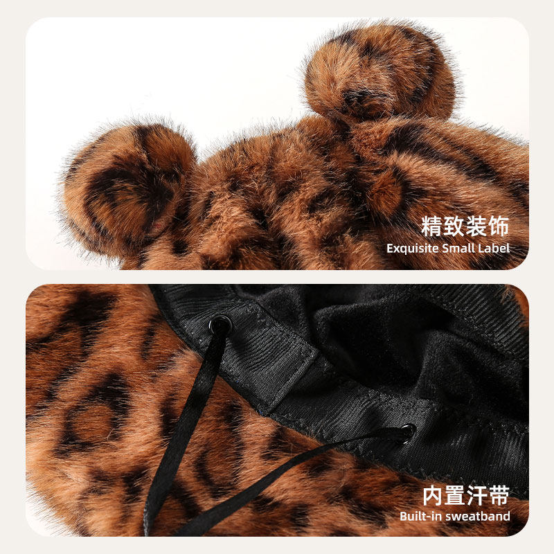 稻草人帽子女秋冬2025新款豹纹毛绒渔夫帽加厚保暖防寒盆帽水桶帽