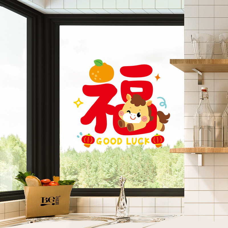 2026新年装饰品静电窗花马年春节新款福字窗贴过年窗户玻璃门贴纸