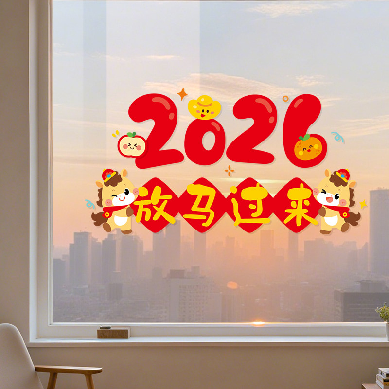 2026新款马年装饰窗花贴画春节过年静电创意玻璃新年贴纸氛围布置